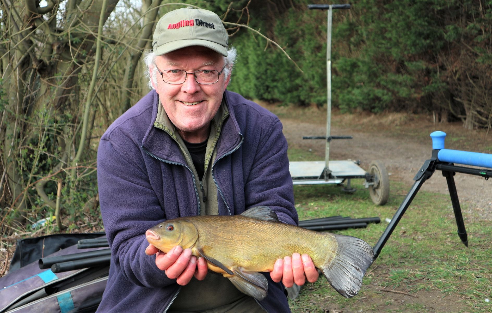 It became very noticeable that once again skimmers were a lot keener on sweet pellets in the cold- water conditions, while roach didn’t mind seafood flavours, even with the groundbait, as long as it was diluted a bit with some brown crumb. Bites dried up a few times, making me think that something bigger was down there, especially when I noticed odd small bubbles on the surface. I quickly put a soft 6mm krill pellet on my hook and pulled out of a good fish. A few minutes later the float slid away again and this tench resulted, the first one I’ve ever caught from here.
